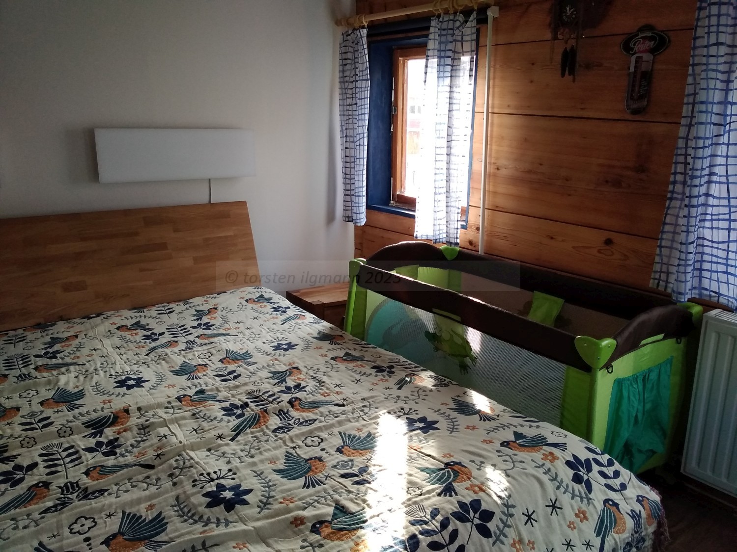 Im Schlafzimmer (Betten 180x80cm)steht noch ein Kleiderschrank zur Ablage zur Verfügung.